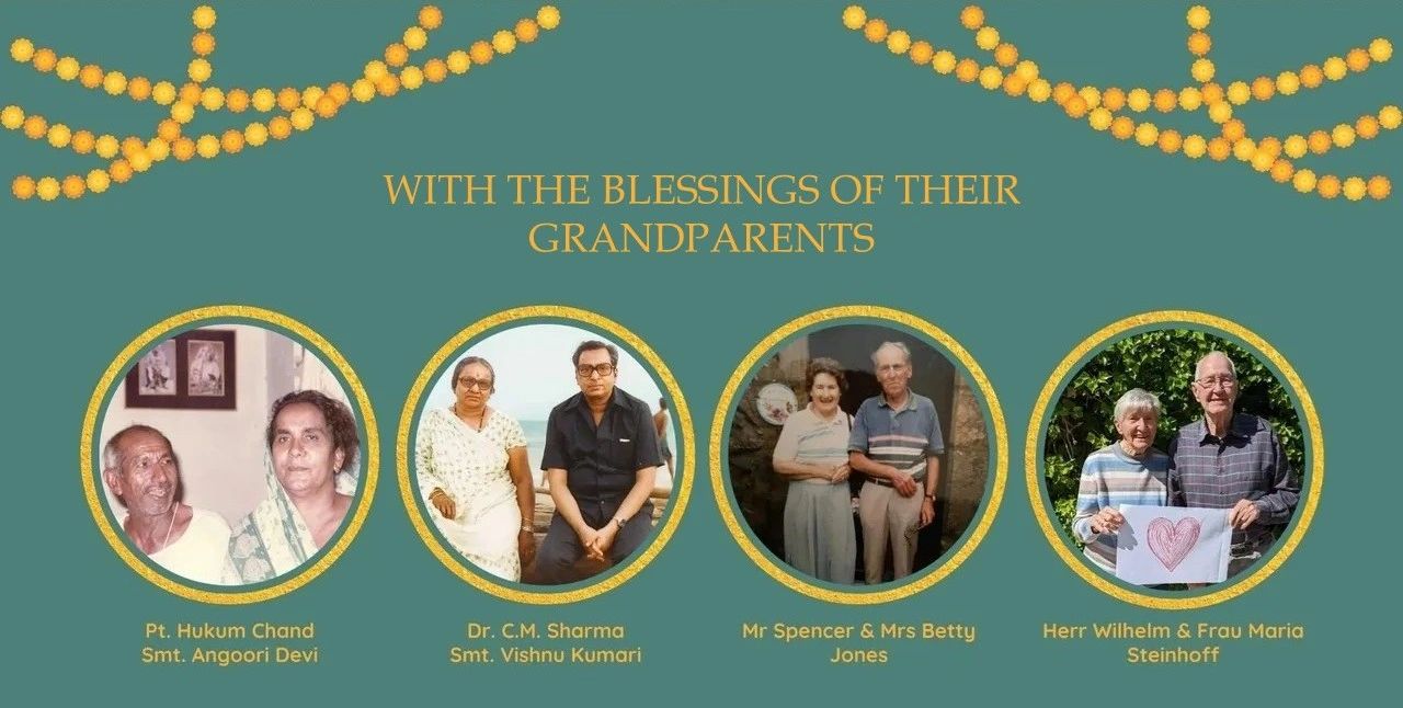 Hi, we're Neirin Jones, from Ingelheim in Germany, and Desna Sharma, from Delhi in India, and cordially invite you to our wedding celebrations!